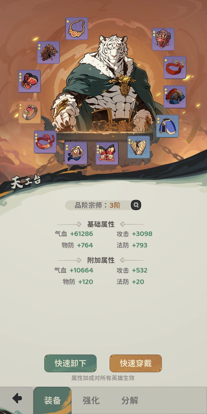 无意点到一键卸下装备,重新装上后角色的属性压根没回调,咋的十星白龙的攻击力就比五星的玉面多三千加吗?上次那公会答题你们出的那红孩儿的火尖枪是谁给的,而正确选择是哪吒给的,能不能别专只恶心我一个。