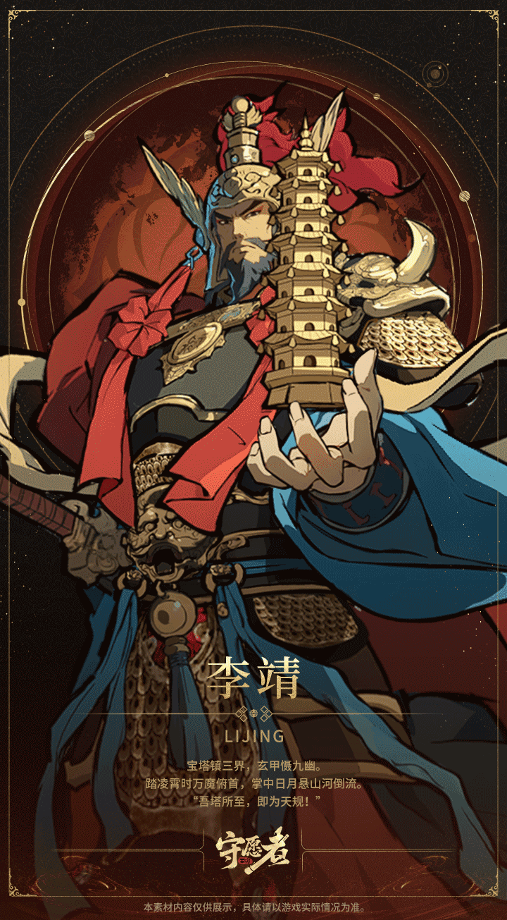周五好呀,各位天命人!小猪猪给各位请安啦~今天继续为大家带来守愿者天团的角色介绍!上一期我们介绍超级不羁的三太子哪吒,俗话说:上阵父子兵!今天咱们就来看看三太子亲爹——托塔天王·李靖在《守愿者》中的实力吧!💡小猪猪题字玄甲映日,长须垂霜。掌中七宝玲珑塔镇三界邪祟,眉间一道凛然气慑九霄神魔。——托塔天王·李靖 是不是也非常帅气呀!!!那就别忘了点点预约咯~点点👇下方卡片预约噢~#今天