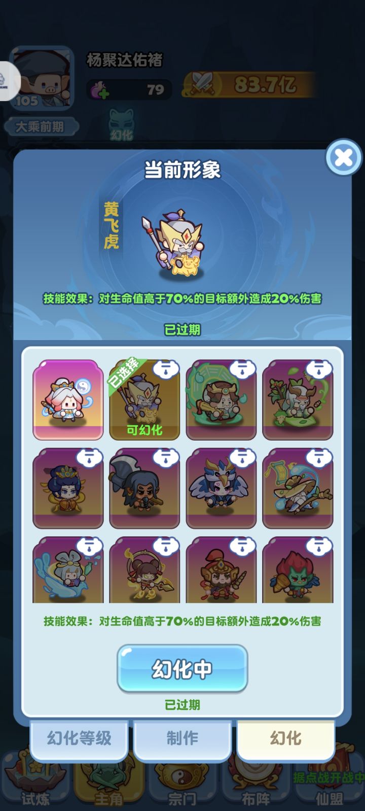游戏名字:杨聚达佑褚服务器: 四服游戏id :122831我才制作的黄飞虎幻化,结果点过去以后直接变成过期,那个1小时只跳了一下就没了。不能点幻化,制作的卡还在的。