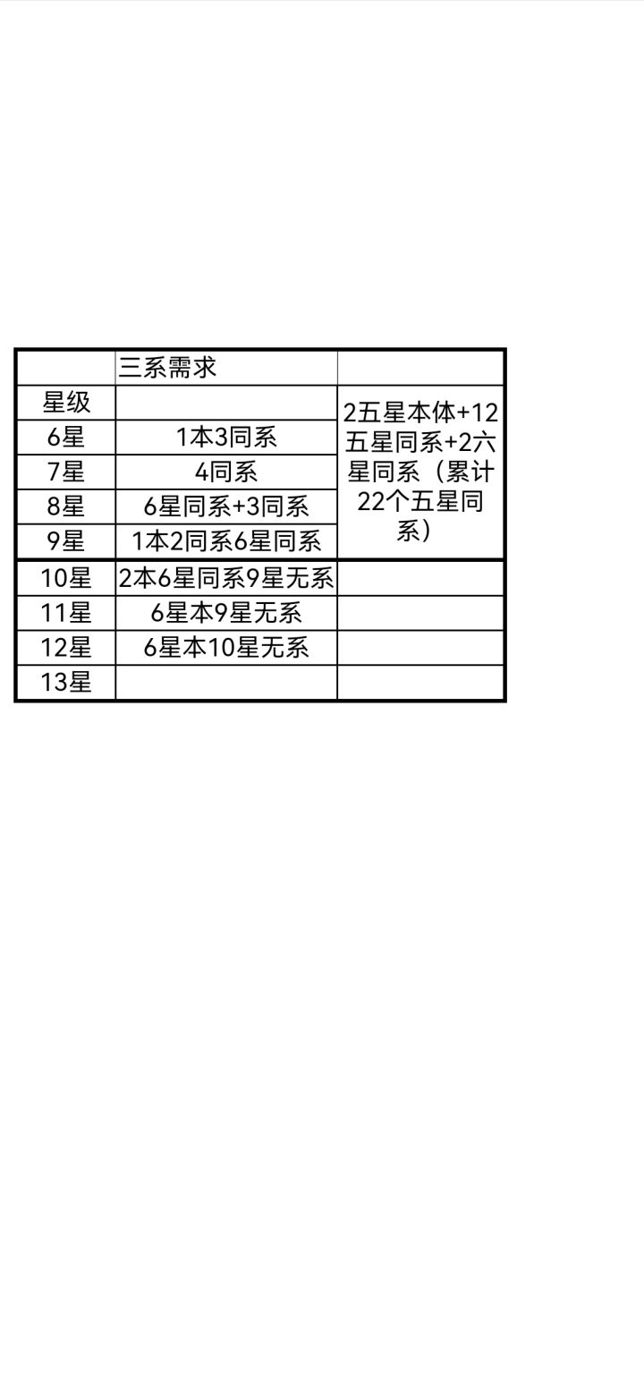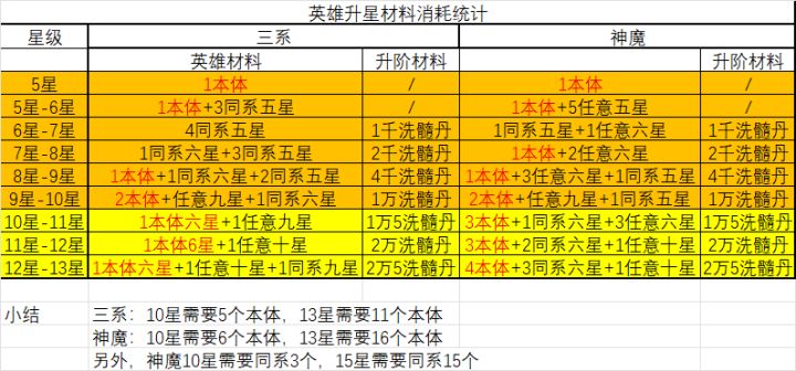 虽然这个游戏策划不给老区活动,也在削福利增加氪金项目,但是应群里群友的需求,总结一下三系和神魔升星的消耗。时间截止2025年7月1日最新版本,后续版本更新更改另说。如图。PS:感谢群友大佬韩天尊、鹿的大力支持(排名不分先后)#游戏攻略