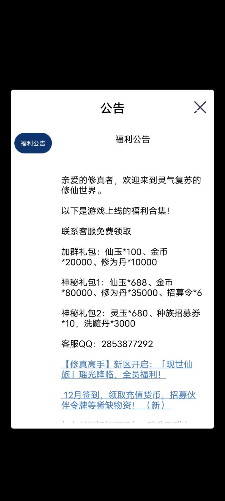 《修真高手》 仙途初启,福利合集。萌新礼包:vip666、777、888、999Tap专享通用礼包:xzgs1214、xzgs2048、xzgs9527小编福利(通用礼包码):BF48A582DC558CD4FCAA52CC6140F002C5E520DAFB6A551A《签到有礼》——加群领霸服礼包——如有疑问联系游戏群客服咨询解惑!诸天道友,辰时已至!本座于九霄云外