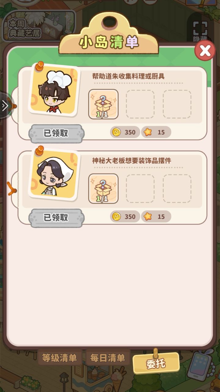 今天的食材清单还没有送,道朱也一直提示清单任务,但是打开清单又显示是灰的,要怎么把食材送给他啊#小岛日记