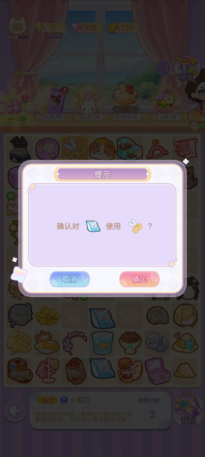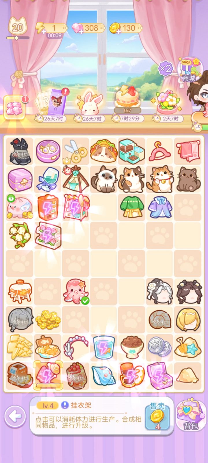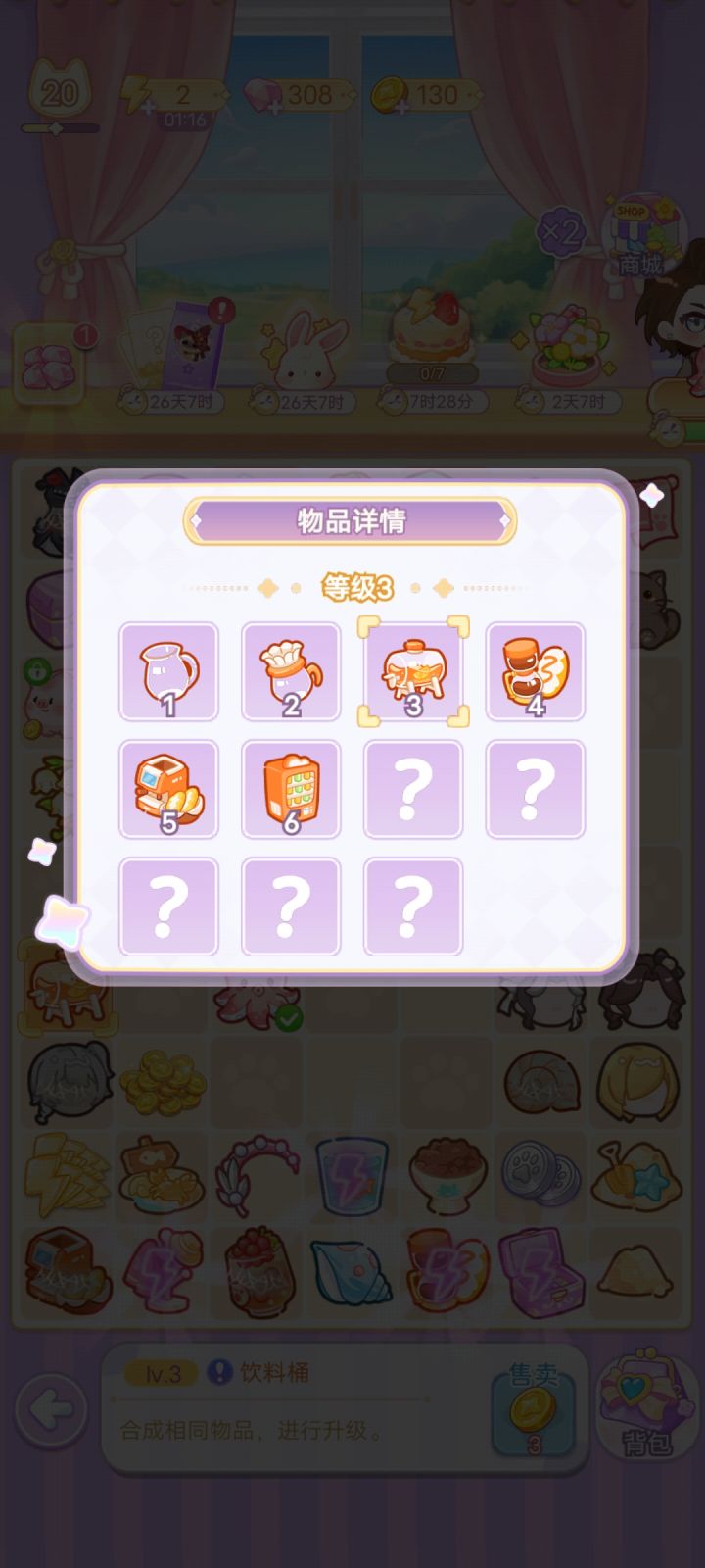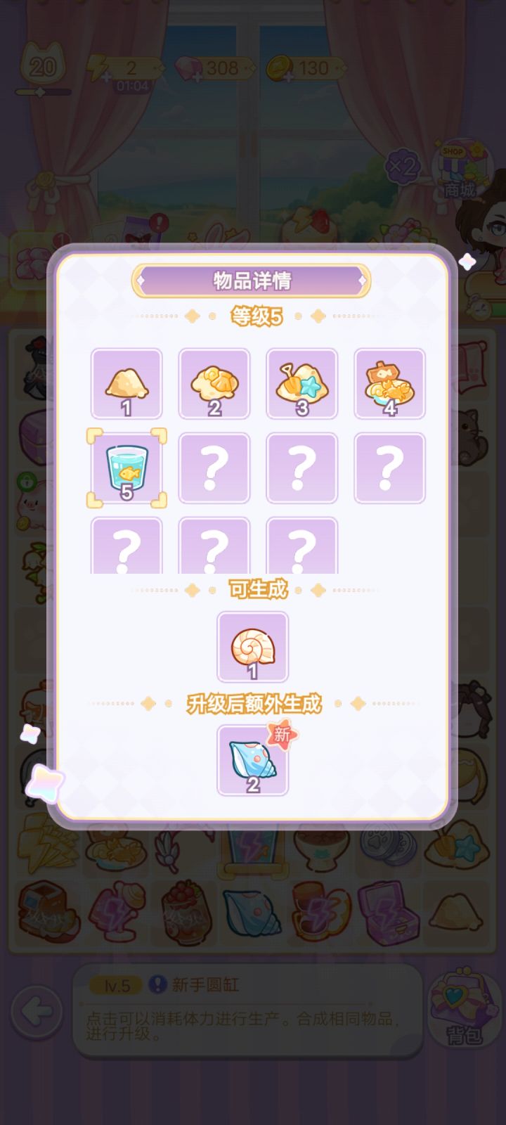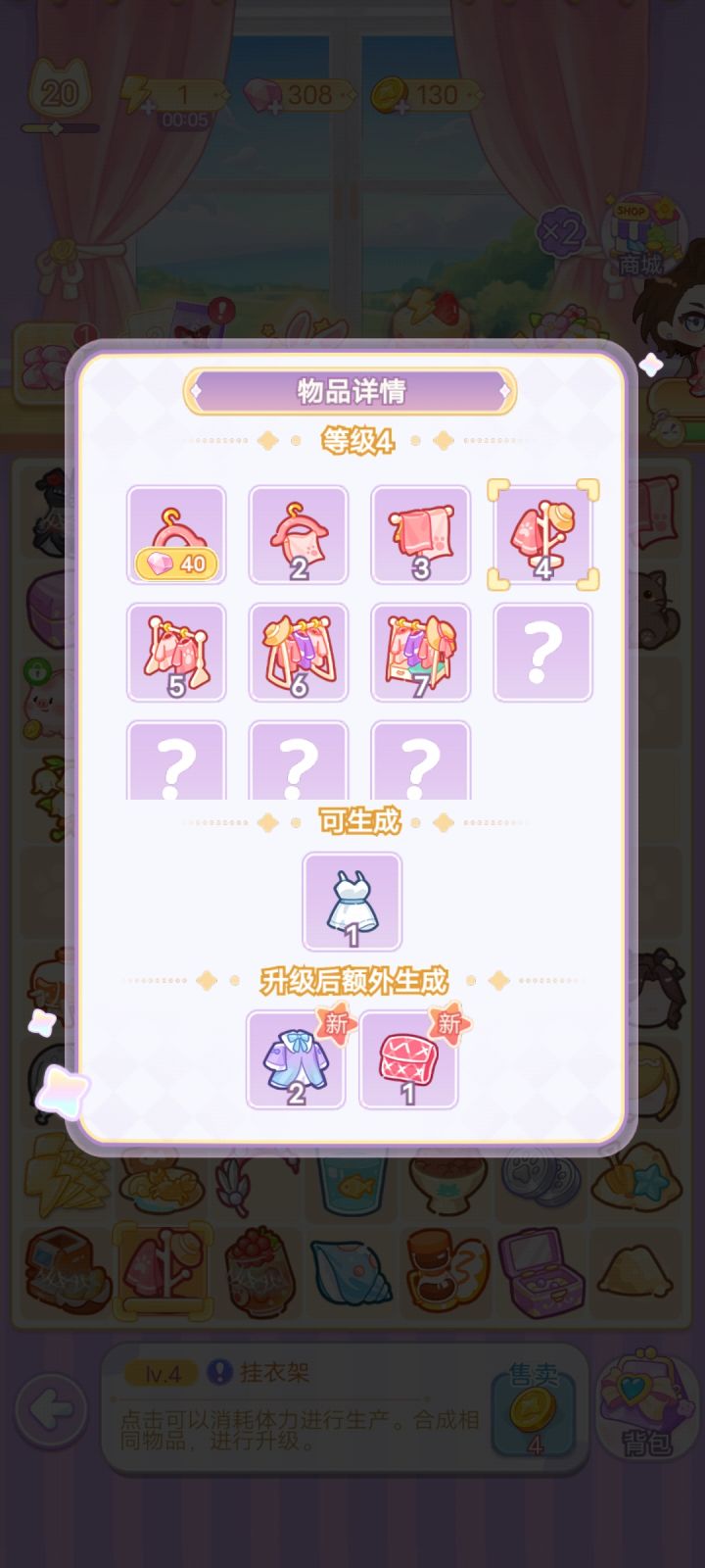 以图1为例教大家如何解锁全部棋盘,给的小剪刀不要扔,当遇见明明是六级却生产不出相同物品时,让小剪刀一分为二就行,见图2-图4,礼包送的衣架水壶也不要扔,放到背包里升级,升级所需物品如图4-图9,如果想要快速升级,可以花钻购买物品,如何判断物品是否满级,看物品有没有小皇冠,有小皇冠就代表是最满级了,下面也会说明,如图10,(ps每日的钱币猪猪最高级是金色小猪哦) 最后祝大家玩的开心٩(๑^o^๑)۶