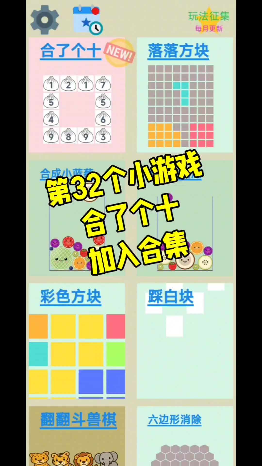 第32个小游戏,合了个十,加入合集! 滑动形成的方框,圈住的数字之和为十,就消除。 消除完毕,或者换位无法再消除,游戏结束。 #图图单机离线游戏合集