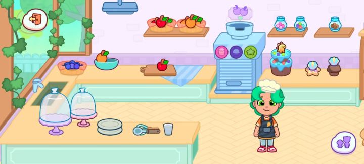 面包店场景包含烘焙区、装饰区和庆祝区,是美食爱好者与派对策划者的天堂,可全程体验从制作到分享甜点的快乐。(一)烘焙区:从原料到成品的魔法甜点机支持 “选择模具”(生日蛋糕 /纸杯蛋糕 / 曲奇饼),放入你喜欢的水果。根据你选择的模具厂,会自动制作成把你想要的甜点。(二)装饰区:甜点美学的展现奶油喷罐可以为甜点图上你喜欢的颜色,撒上可爱的星星巧克力。再装饰上你喜欢的点缀,可以是小恐龙,彩色贝壳,或