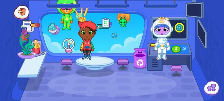 太空船场景是《汤姆猫小镇》中最具科幻感的区域,单一船舱内藏着无限宇宙探索可能,适合喜欢星际旅行的玩家。(一)零重力模式:反重力趣味体验点击 “零重力开关” 后,角色、家具、食物会漂浮在空中,滑动屏幕可推动物体旋转。尝试让角色 “抓住” 漂浮的杯子喝水,或用书本搭建 “空中城堡”,物理互动效果充满喜感。注意关闭重力后,角色行走会变成 “跳跃漂浮” 状态,需适应新的移动方式。(二)宇宙探索界面:星际