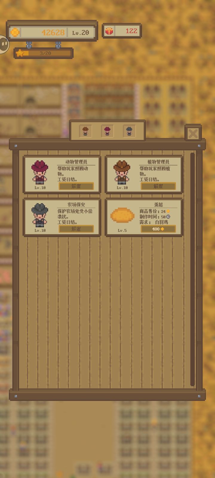 只需种两排田 (我种三排是热卖的时候会瞬间清空) (还有首先要看你顾客的钱包,比如小麦30块,你的顾客钱包只有50那他只能买一个小麦,他就得走了,所以可以改成25块的玉米,或者一会提升顾客的等级,让他的钱包有60块) 批发商重中之重,默认是收土豆的,给他刷新一下,随便刷出个贵的就行,因为批发商是双倍价钱收的,越贵越好。然后就种三排相同的批发商需要的,因为客人是没有需求的,你有啥他就会买啥,所以那些