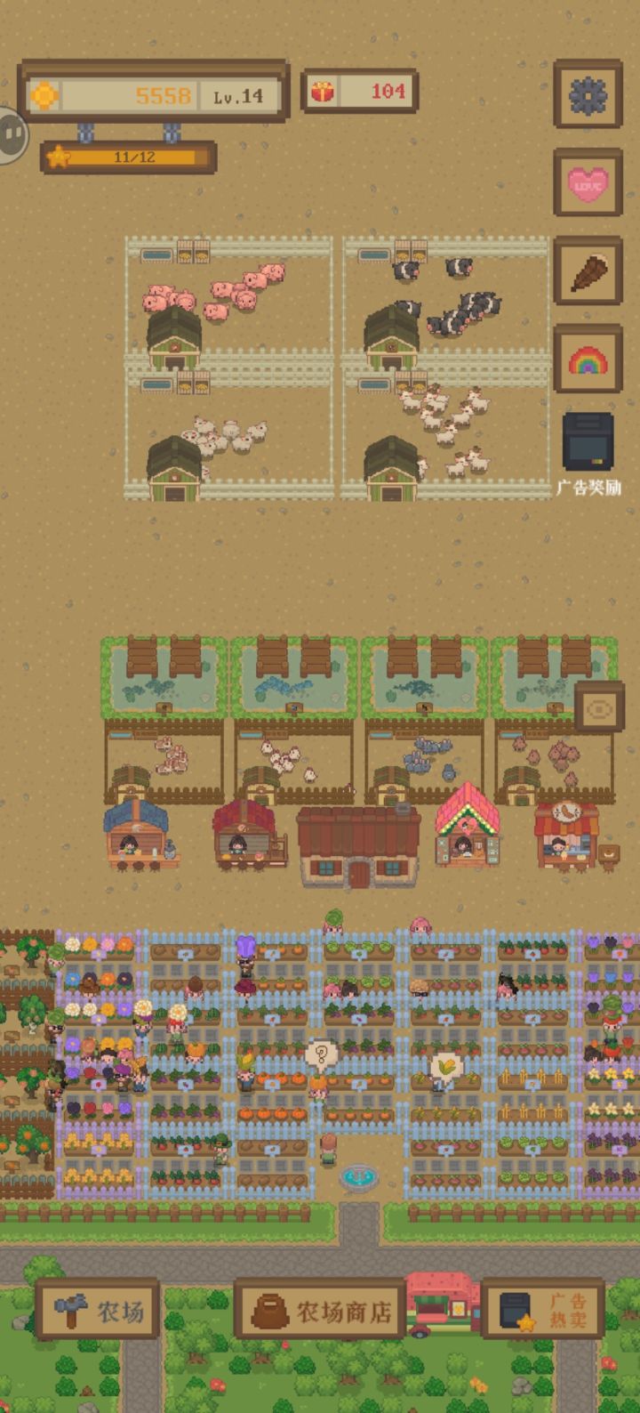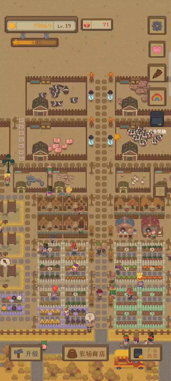 1.如视频所示,猪都快放发霉了,我还是卖不掉,只有其他小人来买的时候我才可以给那个有问号的小人。而且这猪没什么人买,不是有人想买在路上还没来的情况(之后我也观察了很久,没有一个人来买) 2.这游戏经常在我升级或者建造东西的时候闪退 3.玩这个游戏时,手机超烫!!希望优化一下 _(:зゝ∠)_