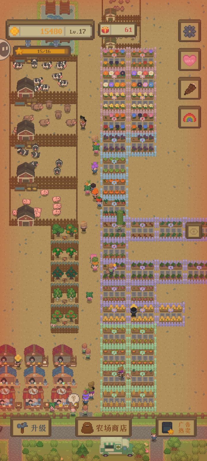 游戏真的很好玩 可是bug有点多(我才玩一天)这些bug全是良性bug 在快速售卖的时候跳过一个顾客的问题就可以在她走路的时候疯狂推销 这个bug只要卡一次后面就能一直用 可以一直刷礼物 但是也有恶性bug 比如果园卡人了(人停在那里不能动) 然后果子就一直卖不出去 没有人买[表情_豹哭][表情_豹哭][表情_豹哭]不过真的很好玩