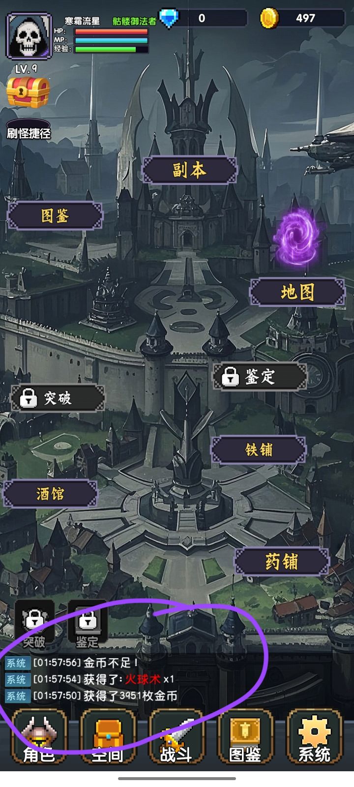 卖完装备后有六千多金币,结果只买一个火球术就扣完了