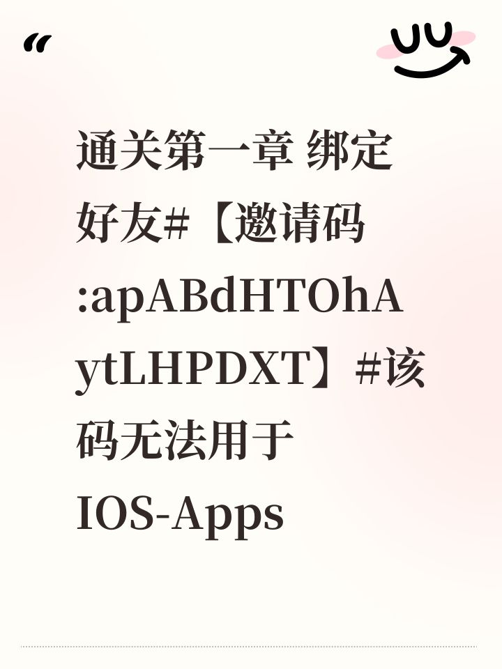通关第一章 绑定好友#【邀请码:apABdHTOhAytLIgfOt】#该码无法用于IOS-Appstore用户。复制该码到薪火相传系统~