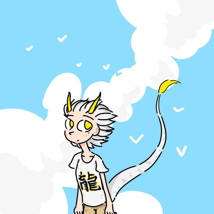 站在高高的地方,清风扑面而来,把尾巴举过头顶,气流顺着尾端划过尾尖,痒痒的,凉搜搜的,舒适无比。纯原创人物,手指画的,简单画了画#夏日幻想曲