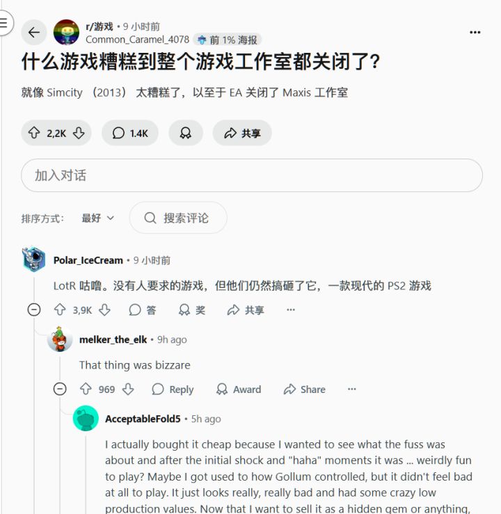 今天在reddit上看到一条热帖讨论因为游戏太烂导致游戏公司倒闭的游戏,第一名公认的是《指环王:咕噜》,第二的是索尼的《星鸣特攻》Hhh。感觉国内的游戏公司很少有这样的情况,因为国内基本都是网游,加上国内玩家数量众多,哪怕游戏再垃圾也有不少人能玩。像二游扎堆竞争如此激烈,开服一年就入土的游戏也很多,但没听过哪个游戏亏了。#游戏杂谈 #游戏讨论 #浅评一下 #steam游戏 #单机