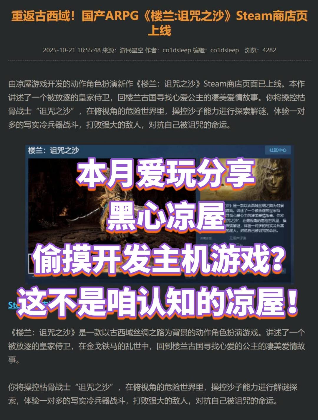 黑心凉屋偷摸开发主机游戏?这不是咱认知的