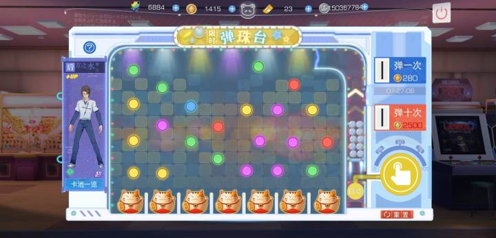 看到最近又有一堆人入坑,正常抽弹珠台抽到角色概率比较低,我还是说一下这游戏抽弹珠台的机制吧。首先把每个月收集活动里送的弹弹券给搬空,然后去限定弹珠台,点击十连,抽五次十连,据说每次限定台十连会增加下一次普通弹珠台1个金猫,用送的弹弹券抽个五次之后,普通弹珠台十连差不多就是全金猫台了,也可能会有一个红达摩不过也没啥区别,记住就这一次十连是全金猫的,抽完就清空。然后,十个金猫最多开出三个角色,一般都