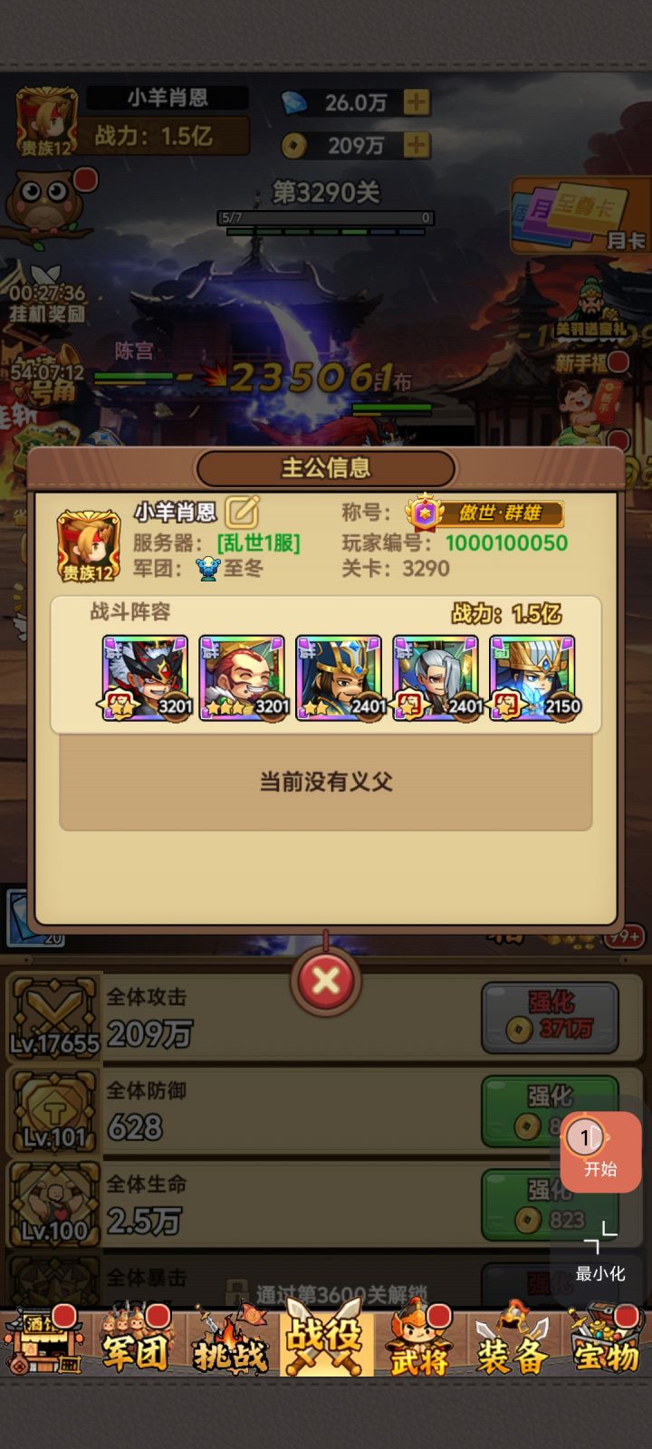 进入游戏点击左上角猫头鹰设置输入兑换码(tap首页领取5个,进群一个)接着把福利里每日广告看完,应该第一天有6000多卷,然后就是买买买,神将抽奖和宝物的礼包每周一刷新不要漏了,抽奖给很多资源😄(武将觉醒材料)阵容选择方面还是推荐群比较容易推关,华佗群体回怒+程宫(加攻速免控) 在配个控制(诸葛,袁术,)可以无限控,基本上的关卡能过,