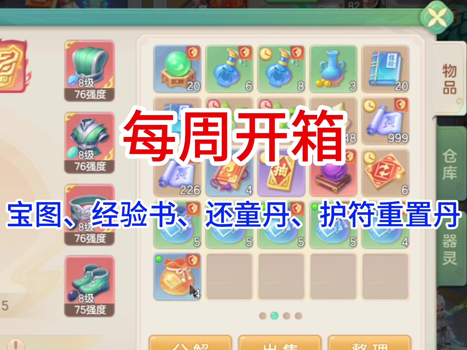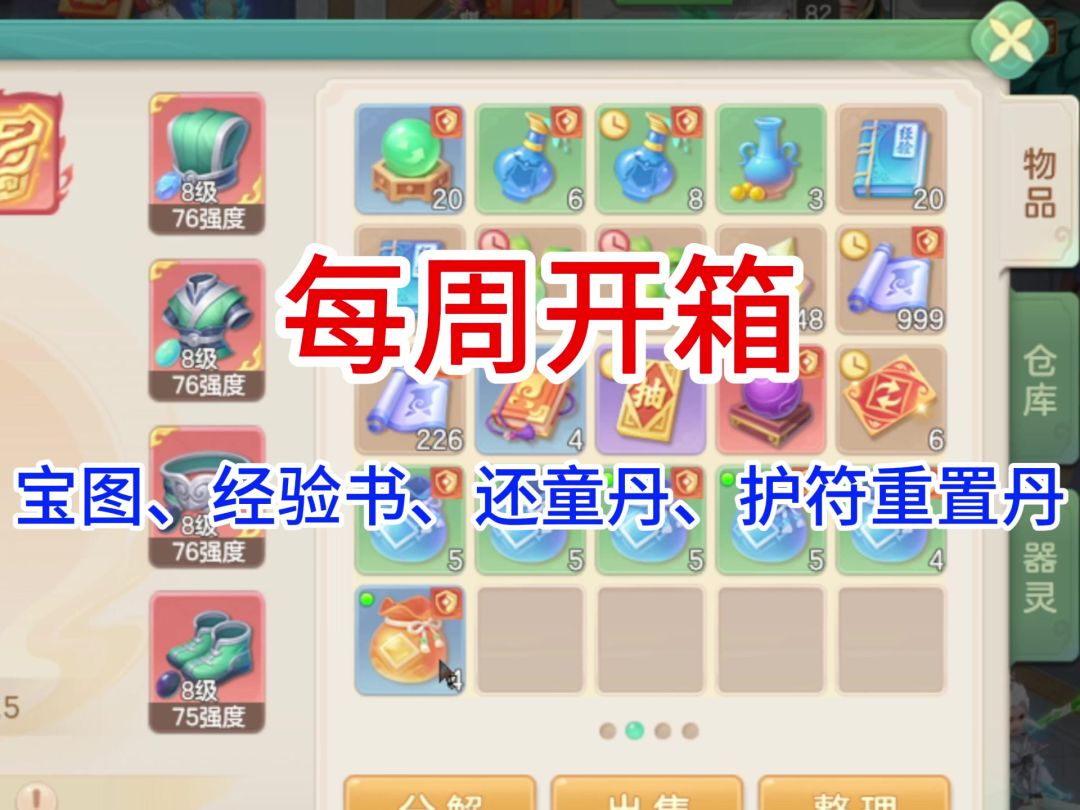 【每周开箱】一个宝图,8个护符重置丹,4本经验书,若干还童丹