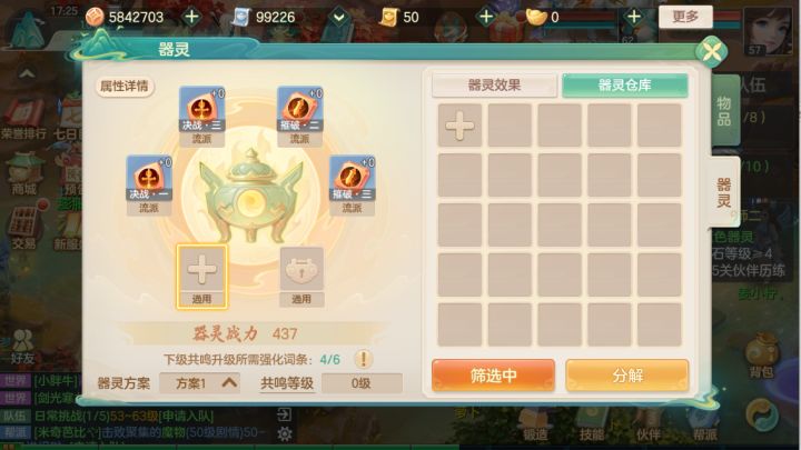 仓库已经一大堆流派器灵了,但很诡异的是居然没有一个通用器灵想问问这个通用器灵在哪里可以获得?这个格子开了好像有十级了依然是空空如也#梦想世界长风问剑录#发现好游戏#游戏日常