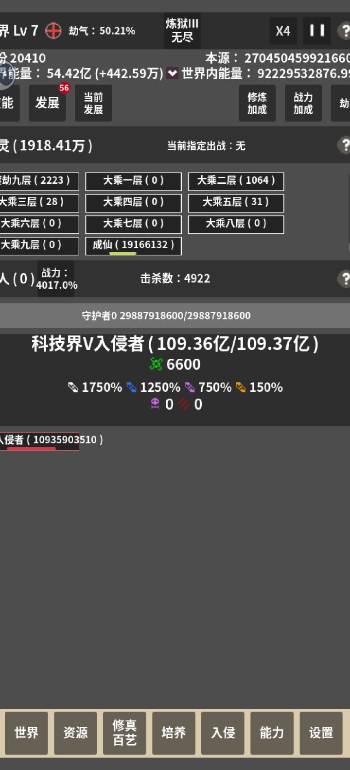 重复好多次了,两万多年左右突然本源和界内能量暴涨并且游戏卡死,由于在挂机也不确定到底怎么触发的