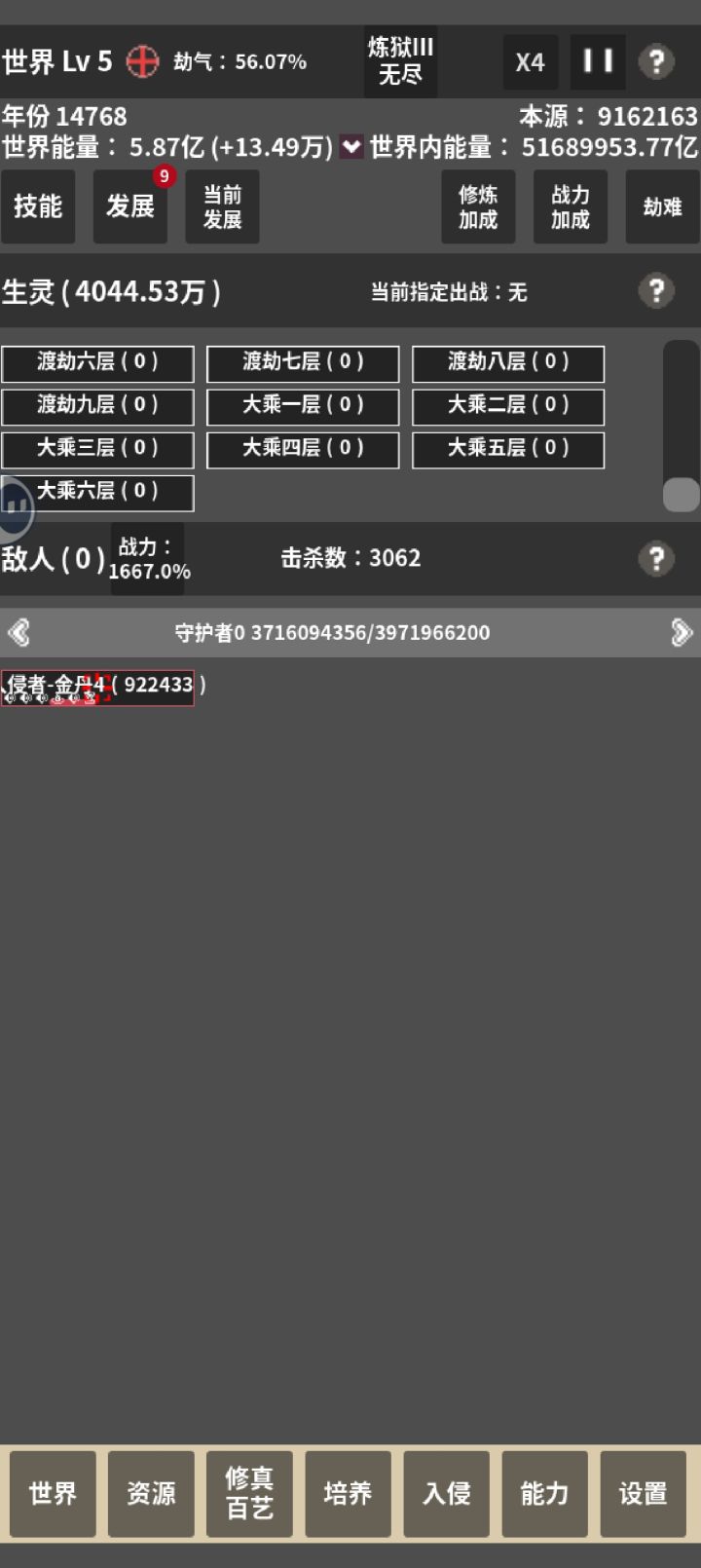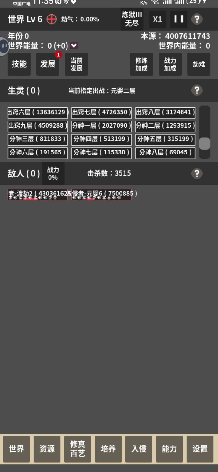 说是无尽,实则不然,炼狱三在两万年以后出现的怪会很逆天,世界能量上千亿,不到千年铁定耗尽,无论上多少修士或者毒,只要被摸到一下就是上亿的世界能量,加上还有一堆其他的入侵者,可以说秒死了,建议削弱一下后面怪掠夺的数值