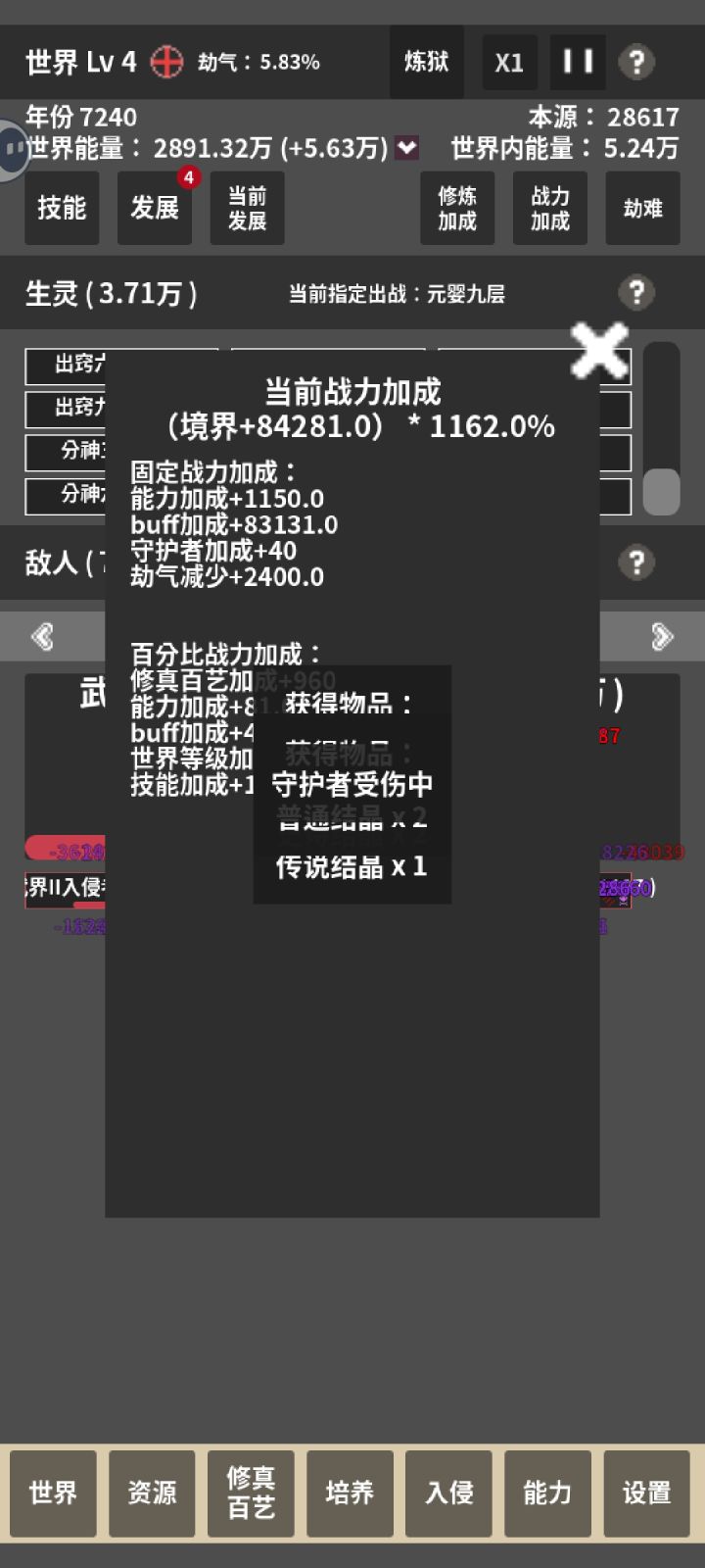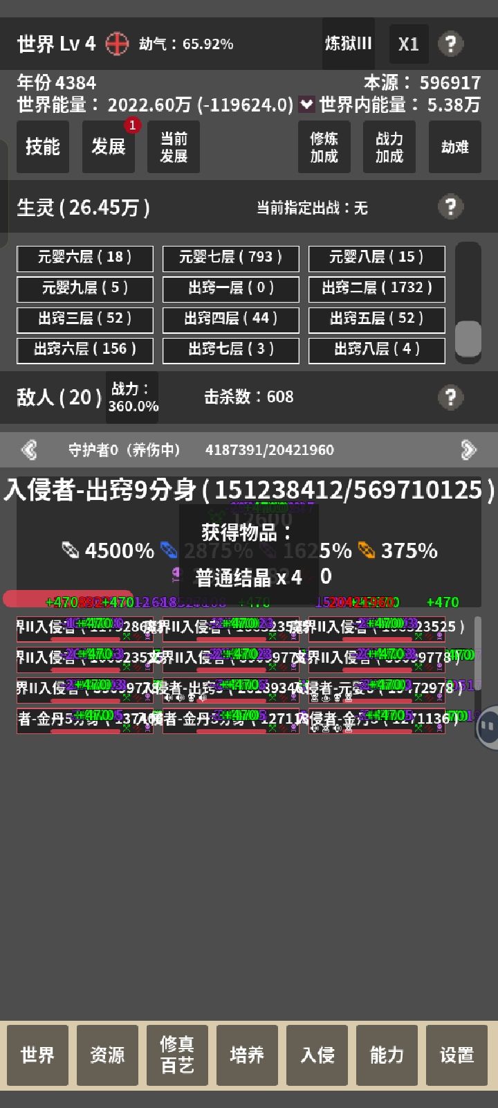 玩到合体的时候,入侵的还是分神的怪,一开始都是直接秒的,后面不知道为什么突然打他们都不掉血直接被耗死了