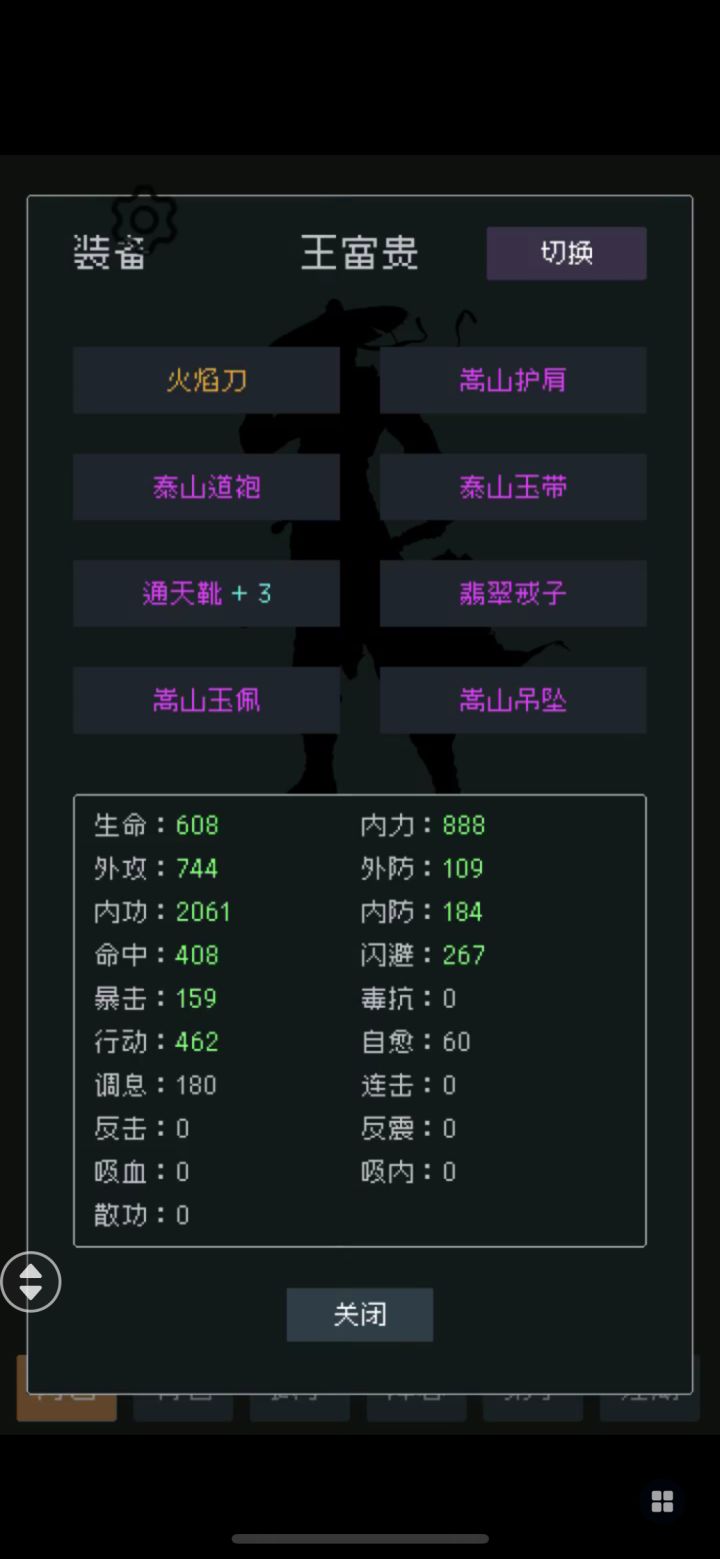 发现一直没人写攻略,我给新玩家重新写一下吧。写的凑合请给个赞,谢谢啦!贴下属性面板,看游戏群里群主暂时没空更新游戏,版本更新无具体日期。武林大会没有尽头,游戏通关少林后一直在这挑战极限。先说玩法,行动条回合制挂机,新手村郊外刷下等级,有点能力了就往高级点的地图跑,带小恶魔的就是BOSS,比如恶霸宅邸,属性点可以10元宝洗练,开始可以加点力量方便刷图,打的过恶霸时就能获得元宝了。英雄帖就是用来挑
