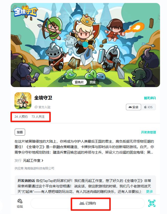 亲爱的国王们:特大喜讯!超有趣的策略塔防手游《全境守卫》在TapTap上开启预约啦(=^▽^=)!你们好呀~我是小小守卫! 以后将由本小小守卫为大家带来最新的游戏咨询与福利,成为你们分享游戏趣事的好搭子,还请多多指教已经迫不及待想与大家并肩作战啦,尽情畅享守护王国的乐趣与刺激!话不多说,我们准备了丰厚的礼品。立即关注并预约游戏,截图留言即可参与50元京东卡抽奖~【