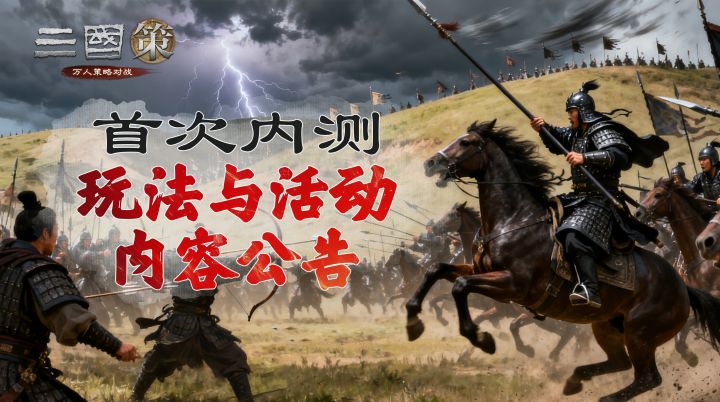 各位主公大家好:《三国策:万人策略对战》「首次内测」现已正式开启!【测试信息】>测试开始时间:2025年12月23日下午15:00>测试结束时间:2026年1月6日下午23:59>测试类型:限号&不计费&删档测试>账号互通:同一账号,三端均可登录本次测试可通过以下两种方式参与:1、 通过招募问卷获得测试资格(目前已截止):已获取资格的主公,可于游戏测试期间,随时下载并体验游戏;(为