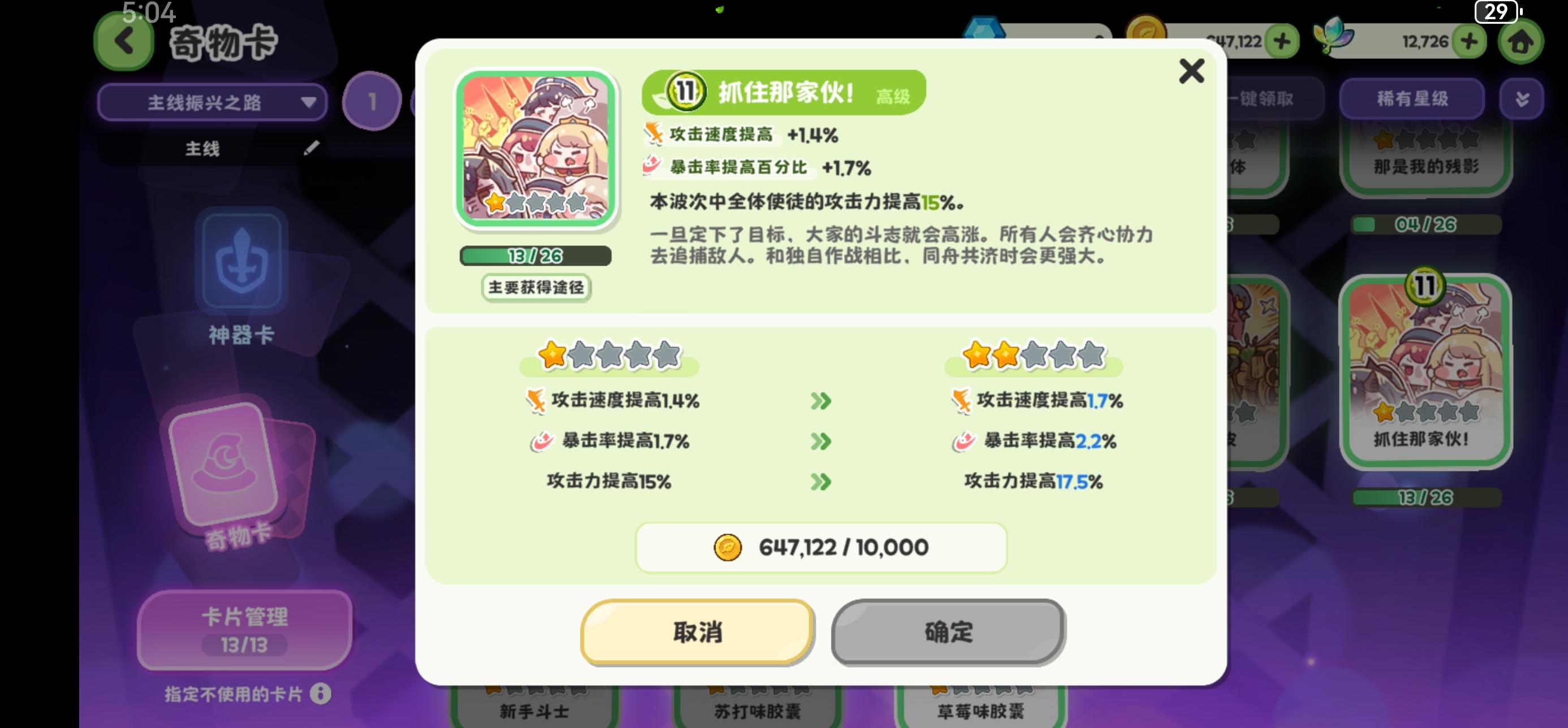 #嘟嘟脸恶作剧 首先论坛里大佬们说的雨滴和祝福一定要拿,有这两个就够了,其次就是优先级祝福雨滴满金,hp治疗翻倍,冷却缩减,攻速,角色年级。然后编队不需要羁绊,如图我没练莫莫,还是一级的,蜜蜂我就升了级30多级,小克也是升了级没练(这里想说的是一点没练也能打!!不需要浪费资源)需要有莫莫,蜜蜂最好也带着吧,盾可以任意,不建议用柯米!所以我用的小克。奶的话我怕不保险所以带了青蛙和优米,任意就行。后面