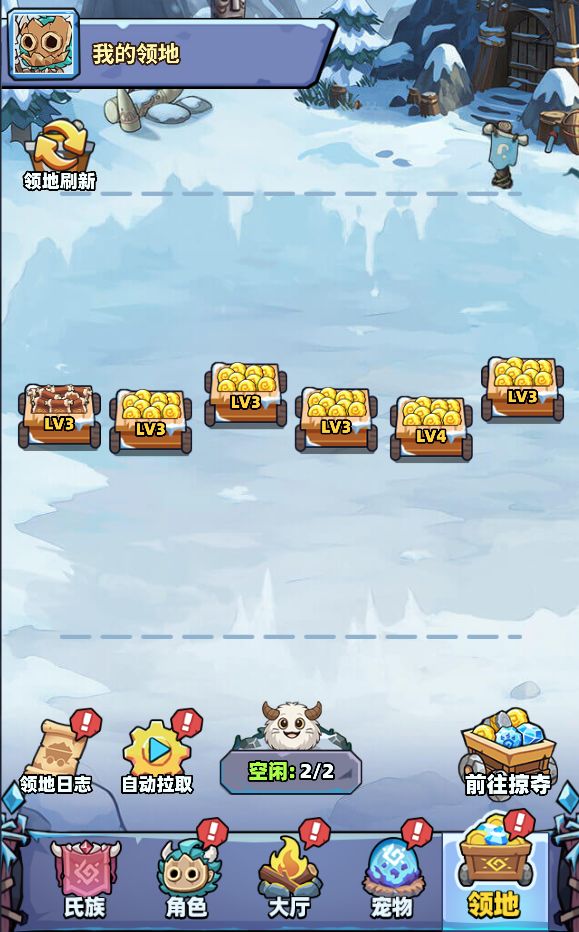 4人塔防,雪原封王👑!萌新必看,《妖怪来了》领地玩法大揭秘! 📚Hi,小萨满们~ 我是你们的妖妖!今天带来的是《妖怪来了》中领地玩法的基础指南,帮你快速上手!🌲 领地:资源核心! 🔓萨满勇者等级达到8级,即可在右下角解锁领地功能,它是游戏中日常物资的主要来源之一。 💰领地上每隔一段时间将会刷新出一个新物资,道具包含:金币、钻石、卷轴、随机道具等等,若物资已满,则将间隔一段时间自动刷新出新物