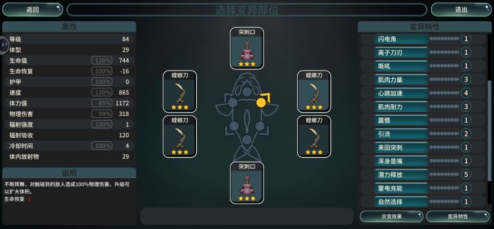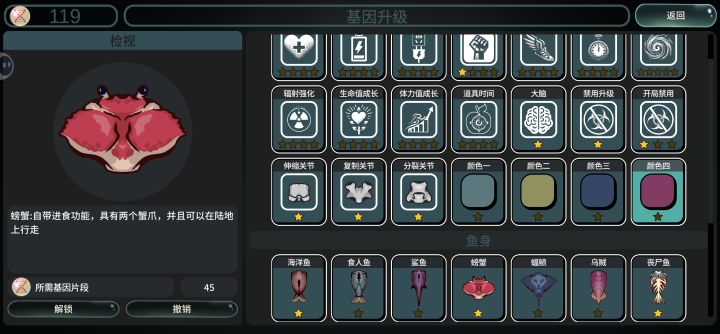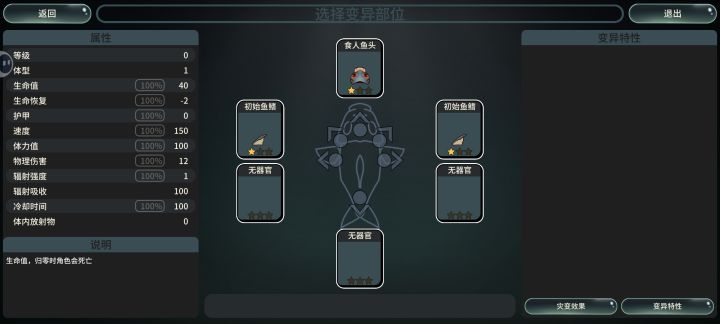 写在前面:没有任何催作者的意思,只是游戏很好玩,玩多了之后把发现的情况反应出来,请作者根据情况随缘改1.成长时禁用会出现禁用失败,被禁用的选项依然出现2.寄生器官+属性偷取+环境速度变异(所有角色速度变快),会出现前进速度忽快忽慢的情况3.偶尔冲刺翅膀不展开,体型变大后有翅膀的冲刺依然与怪物发生物理碰撞(故意这么设计的?)4.卵巢的替死效果是不是bug,只要有小鱼在,本体可以无限复活,血量