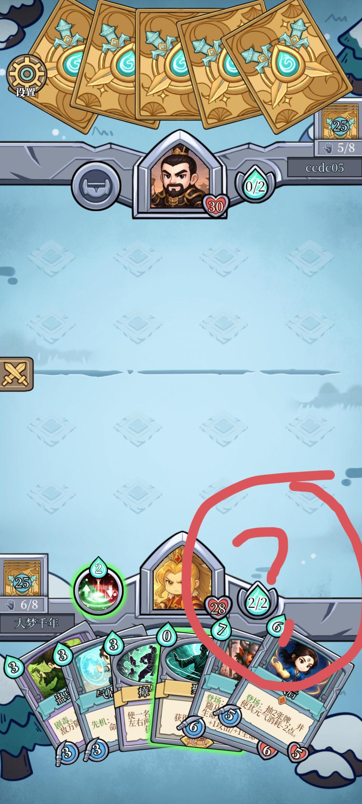 bug有点多。。。图片上那个按钮就没了。就像昨天乱斗有一局,用气宗黄帝那张5费的太乙归元收了玄宗曹操545的雷灵通判(乘势打伤害的)。然后后面打出收的变7费的雷灵通判,再打一张低费的,触发不了乘势。还特地看了一眼旁边那个对战记录,确实是放了个屁,啥也没做。