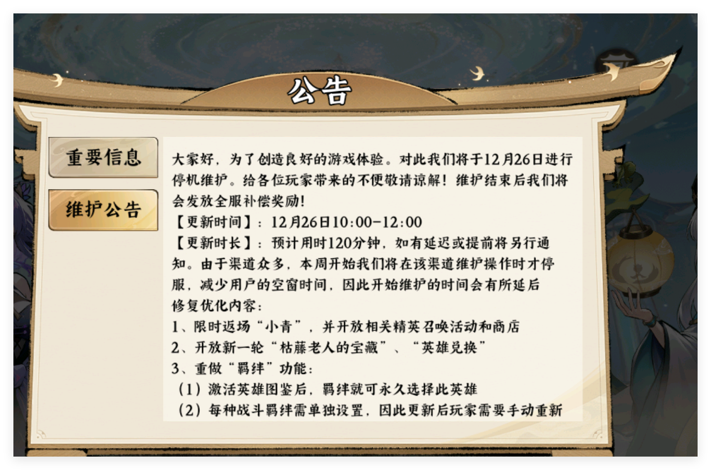 公告上面更新维护时间是10点到12点 为啥现在才维护了?好奇怪