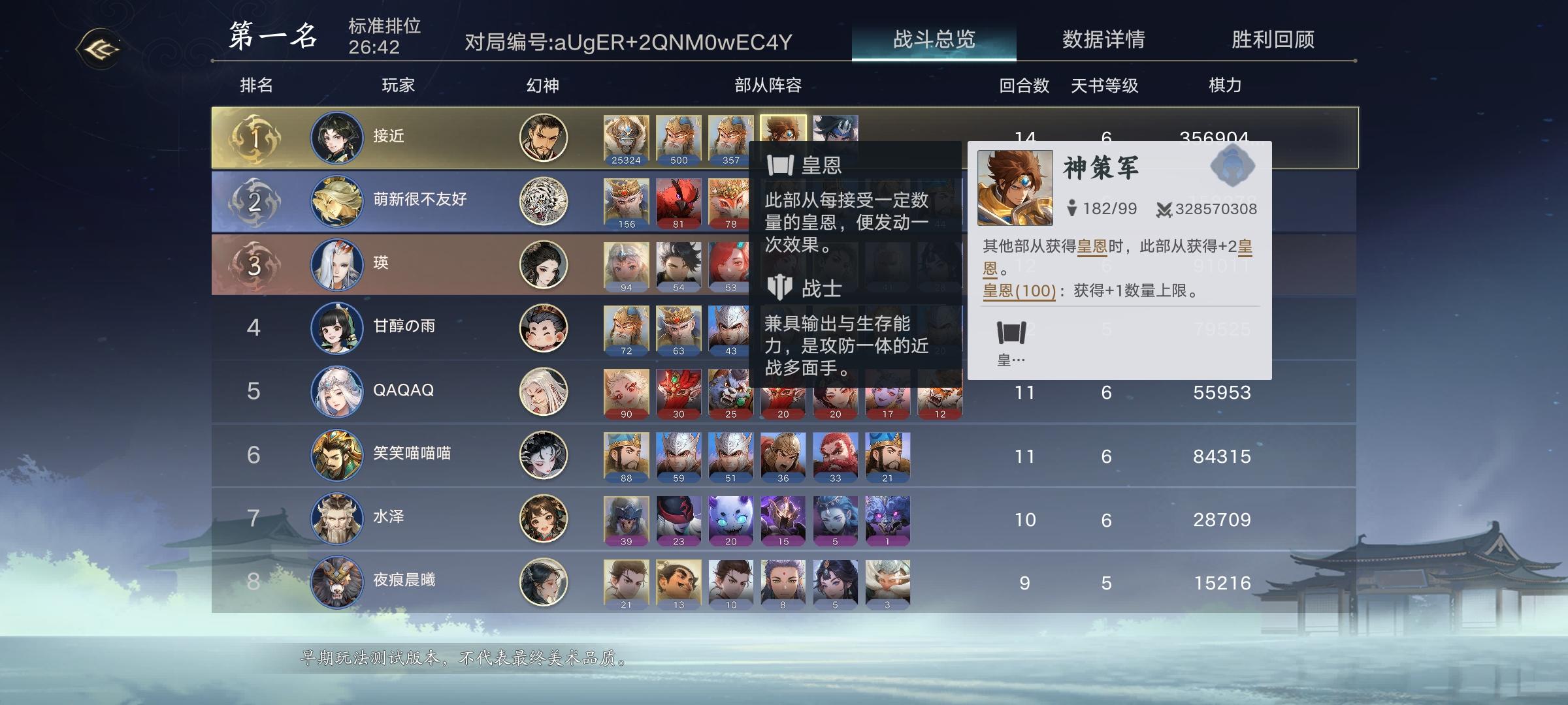 前期还可以拿经济军团稳血,不一定非要蚌珠精 补充一点,建议卡天书2级4级,不要在天书3、5级停留,增加核心出现概率。 有多余的位置可以拿其他强力远程射手 视频里最后弄出金救苦天尊是为了给1队军团加两仪buff让打架更强。可惜没用回合了,不然有悔棋或者场上合金就可以给了。