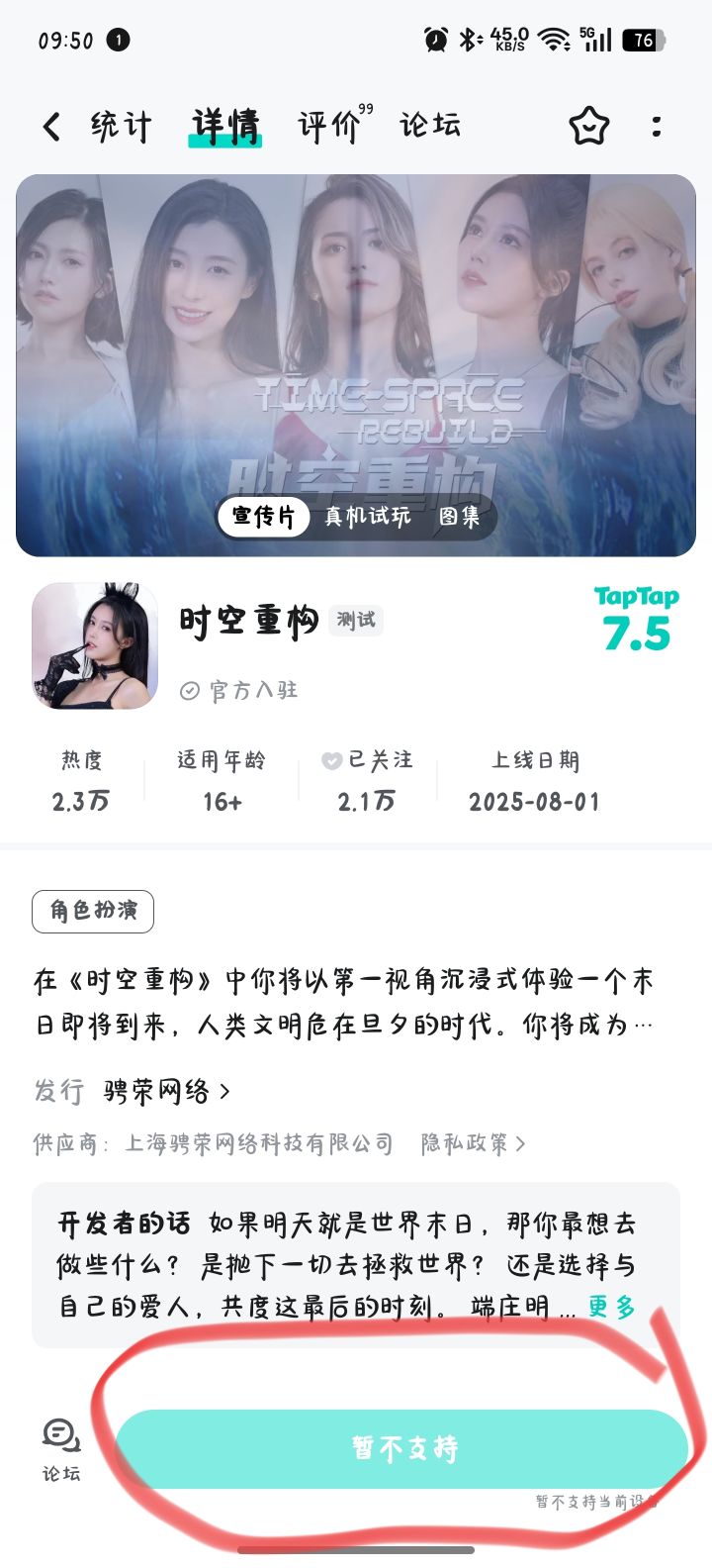 如图画圈所示,不支持当前设备。安卓16系统