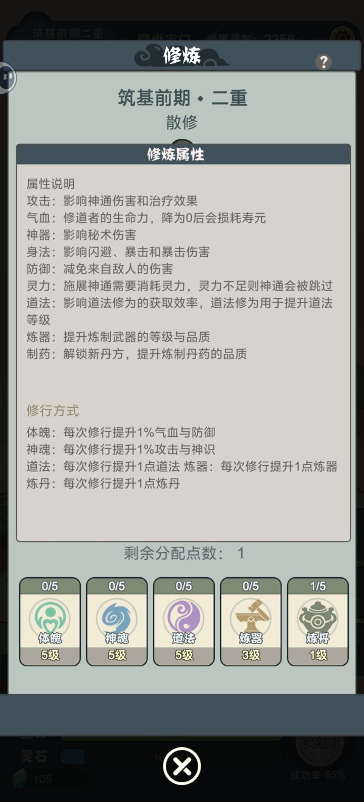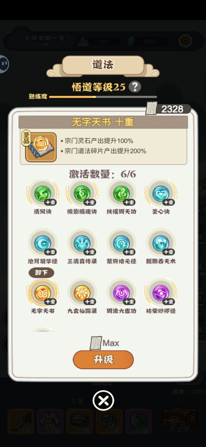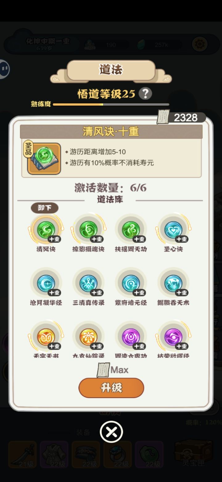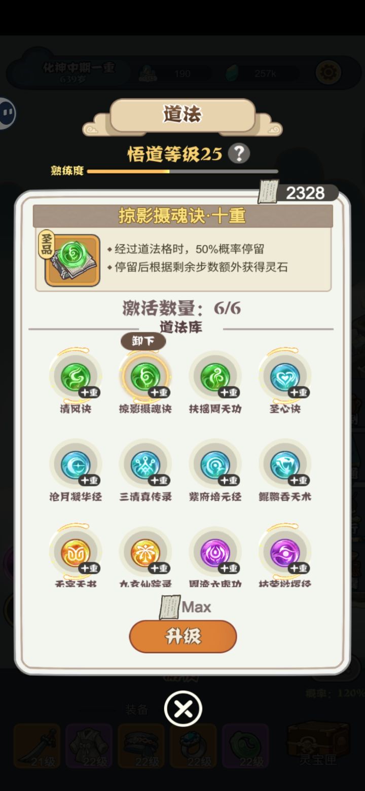 1.攻略:地块建议炼丹炼器1:1,炼丹是前期辅助获得道法的重要途径,炼器是后期经验的重要保障,钱不需要,后期花不完。暖池只升级一个做前期任务,拿到属性丹奖励,二层优先玄塔,没有就选炼器>炼丹>道柱。不想做的任务可以用藏宝阁的幻海丹取消,道法前期攒着,优先把掠影摄魂诀,无字天书,清醒决点到7级。2.感想:新加入的灵宝系统不错,但是每个的属性只有放上去才能显示,没有说明。道法,炼器,炼药都有了熟练