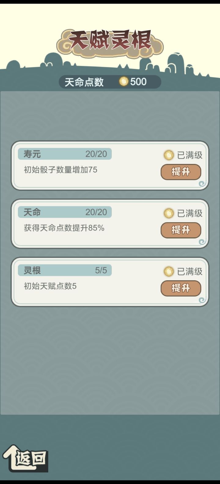 如图所示进阶提升灵力+10实际还是原灵力还有灵力+2的,修为中点击问号看属性详情神识写错写成了神器。还有就是商店中的商品价格会随着等级提升而增加我认为这并不合理,一级的神通从原本三千多最后到一万三,开局的时候神力天赋可以点满但是进入游戏因为没有0天赋开局过所以并不知道增加了什么然后就是最后通关反馈的神力只有34还有青青好感度满了之后好像并没有什么提升,那个技能等级一直在