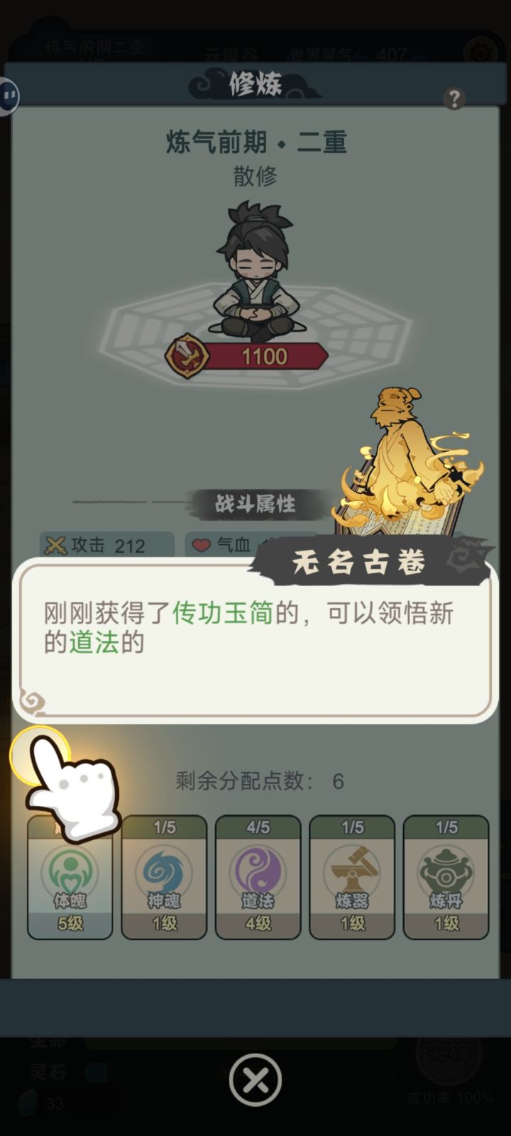 1.首先是第一次登录时候,两个协议界面同时闪,啥也点不了,退出重新进才好了(oppo手机) 2.增益、减益技能升级与不升级,技能说明是一样的,让人有点搞不懂是不是升级没什么意义?只能升级攻击技能? 3.道法、炼器、炼丹界面的小问号点不开 4.道法、炼器、炼丹感觉加点后没什么变化,不知道是我比较非还是什么