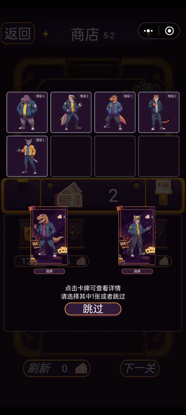 如图极速发育,快速拿满牌组成型牌组无限进化老鹰牌是关键牌越早越好,三猴四河马加速叠老鹰被动前期过渡牌组选加分能力牌保证可以过关就行了可以不加满,免费刷新商店和半价购买这两张牌是关键牌加满级(买牌然后卖掉可以实现无限刷牌流,在早期拿到强大牌组)算上老鹰牌四张牌剩下四个位置可以开始选猴子河马牌,基本几个回合牌组就可以满级,如果运营的好甚至可以做到一回合满级(因为商店刷新比半价购买消耗慢,所以建议只