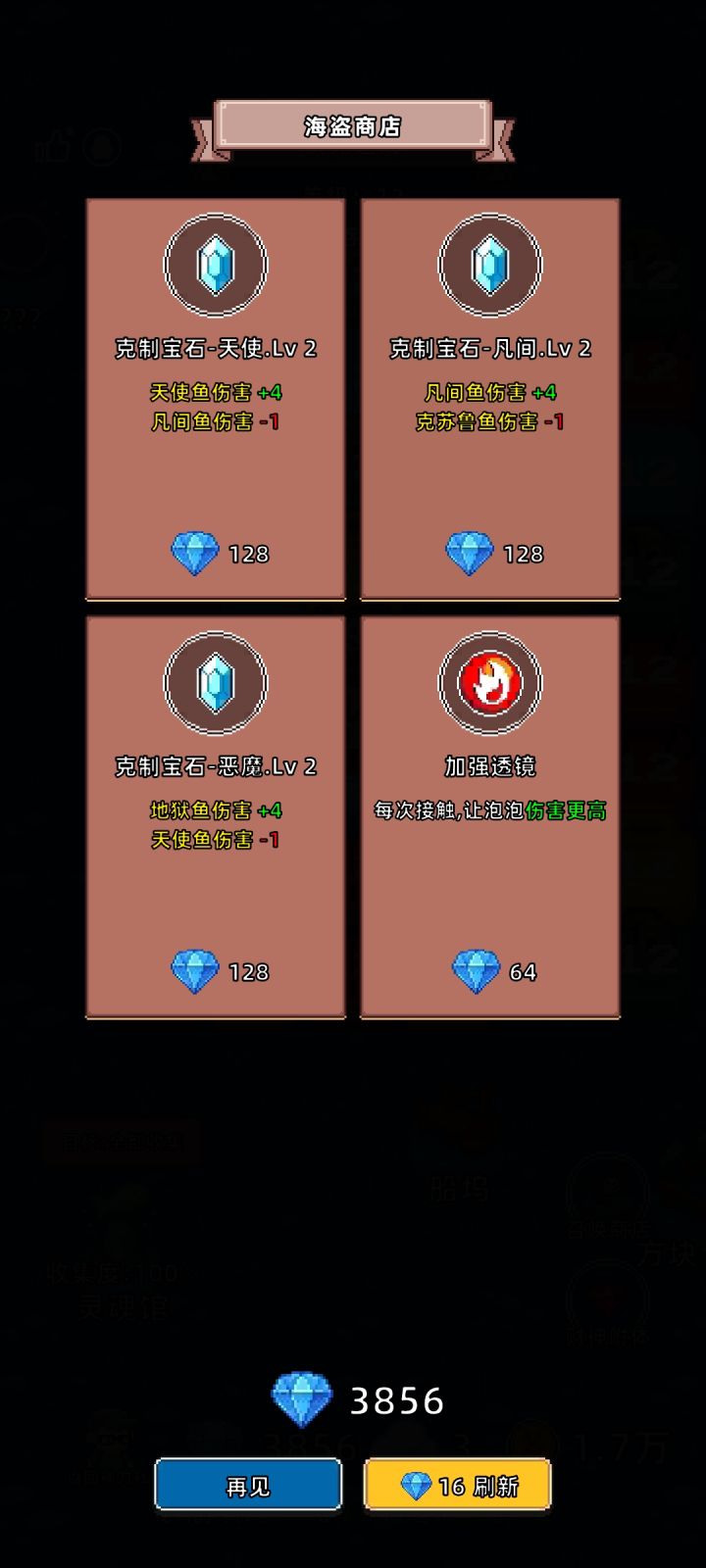 海盗商店,前期钻石稀缺的时候时不时会出现5级4级的,到后期全是2级3级,4级都少,5级更是没有。已经等级12了,一个5级宝石都没有