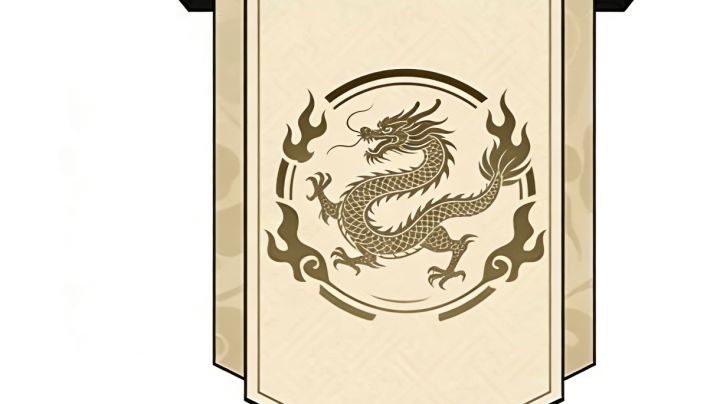 - 造型上以极简线条勾勒穷奇的核心特征:展翼的姿态强化了凶兽的威慑感,利爪与鬃毛的棱角处理利落,没有多余装饰,突出蛮荒凶兽的原始张力。- 配色采用黑金为主,底色选浅米黄中和黑色纹样的厚重,让整体视觉不压抑,同时保留凶兽旗的肃杀气质。- 纹样刻画偏向细腻,麟片的层叠纹理、飘逸的鬃毛和踏云的姿态,精准还原麒麟“瑞兽”的特质;侧边的祥云暗纹与主体麒麟呼应,进一步烘托吉祥的氛围。- 色彩上用