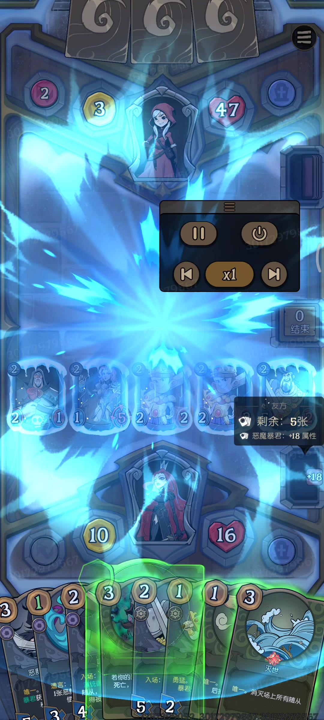 我方后手出的第二张封印效果没出来,随从还是被对方的反制牌干掉了。