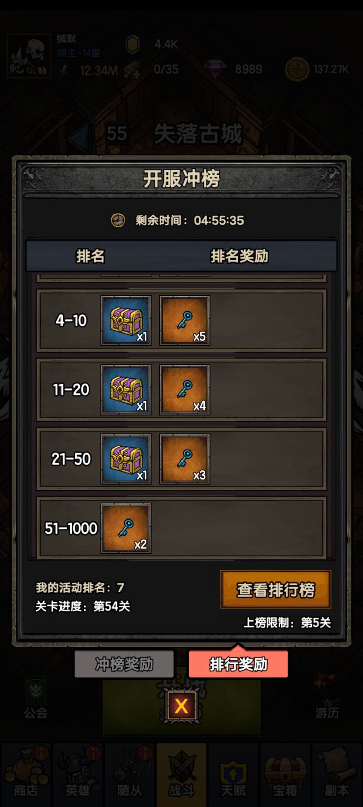 开服冲榜4-10跟50奖励一样?
