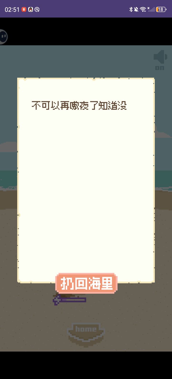 吃小鱼干长条紫很长,切home后黑屏,💤