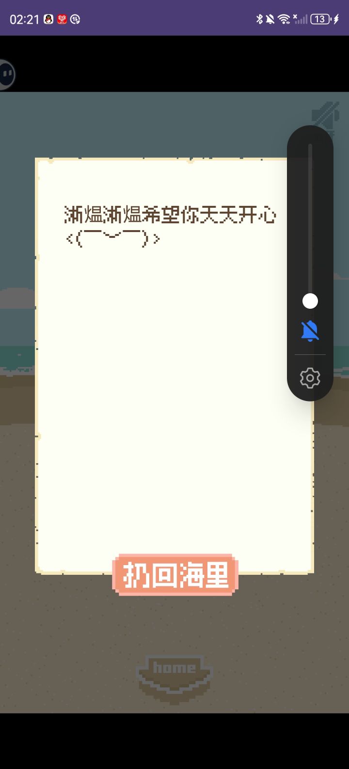 ①希望可以给鲸暖宝宝添加换衣服的设置②有些贝壳捡的太多了,目前没什么用处,感觉可以开一个集市,用贝壳来换东西(比如我们鲸暖宝宝的衣服)③希望鲸暖宝宝可以增加其他形式进入音乐制作中④我也想写漂流瓶,并且希望漂流瓶可以保存(有些漂流瓶内容真的很暖心)⑤想要地图扩大范围(比如海里,鲸暖宝宝的尾巴应该是可以游泳的吧……)