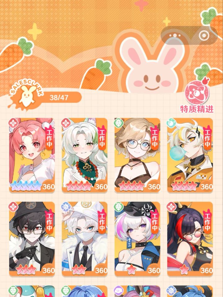 个人的一些简单游戏经验分享给大家首先是资源分配,前期彩萝币也好嘻嘻币也好都很容易获取,但彩萝币尽量不要乱用,等大活动时用来买道具,比较推荐的大活动是踏青和浪花,奖励多且比较容易达成。嘻嘻币能攒尽量攒一点,后面种花做花的话花起来如流水。其次是店员的抽取和培养,神秘档案全凭运气,但白金档案可以指定up,个人推荐优先抽取甜莓特质店员,五甜莓是目前最好凑的卡组,后面花艺给的加成很大,打沙盘会容易许多