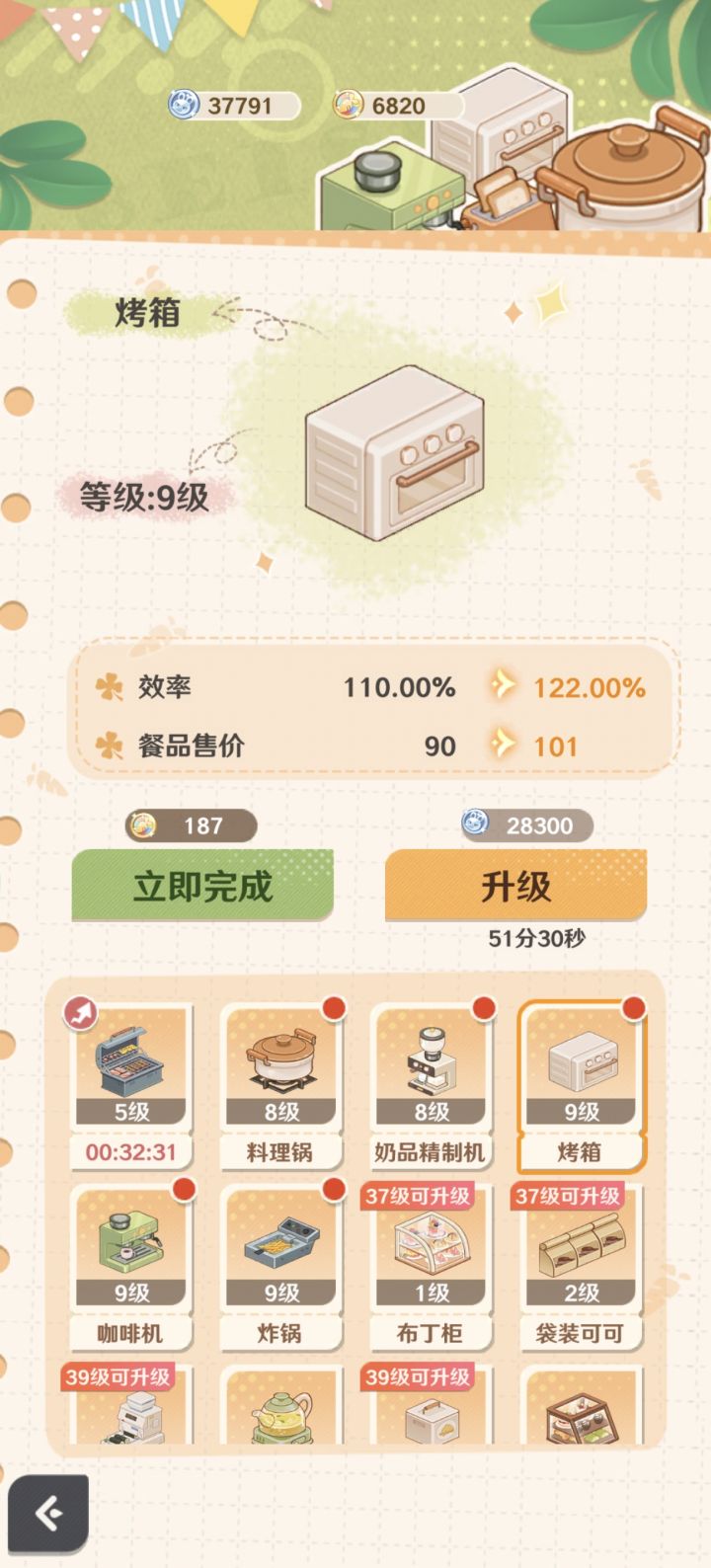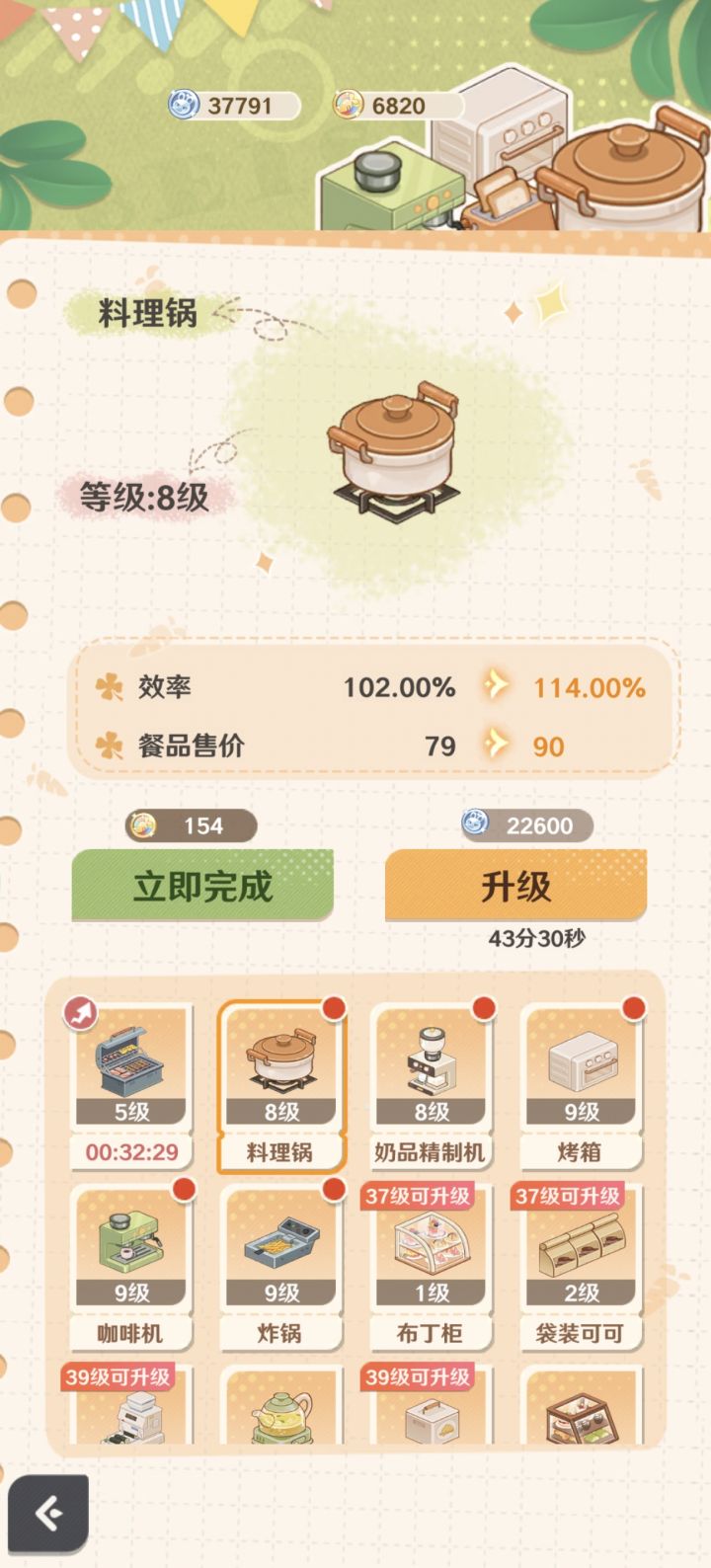 千万千万注意⚠️⚠️⚠️料理机的升级花费的时间都是逐步递进的,不要在前期时间很短的时候就狂用沙漏!!!九级大多都在将近1个小时,等不要说后面,大家这段时间哪怕不在线也没关系不需要在乎浪费太多时间。另外沙漏可以在百货商店和协会商店购买(虽然写的是300但是实际时间是5分钟,到后期需要的量只会越来越多,不要急着用,可以在主线任务公布时在用。)两者不同在于协会商店是不限购的但需要1500协会券,