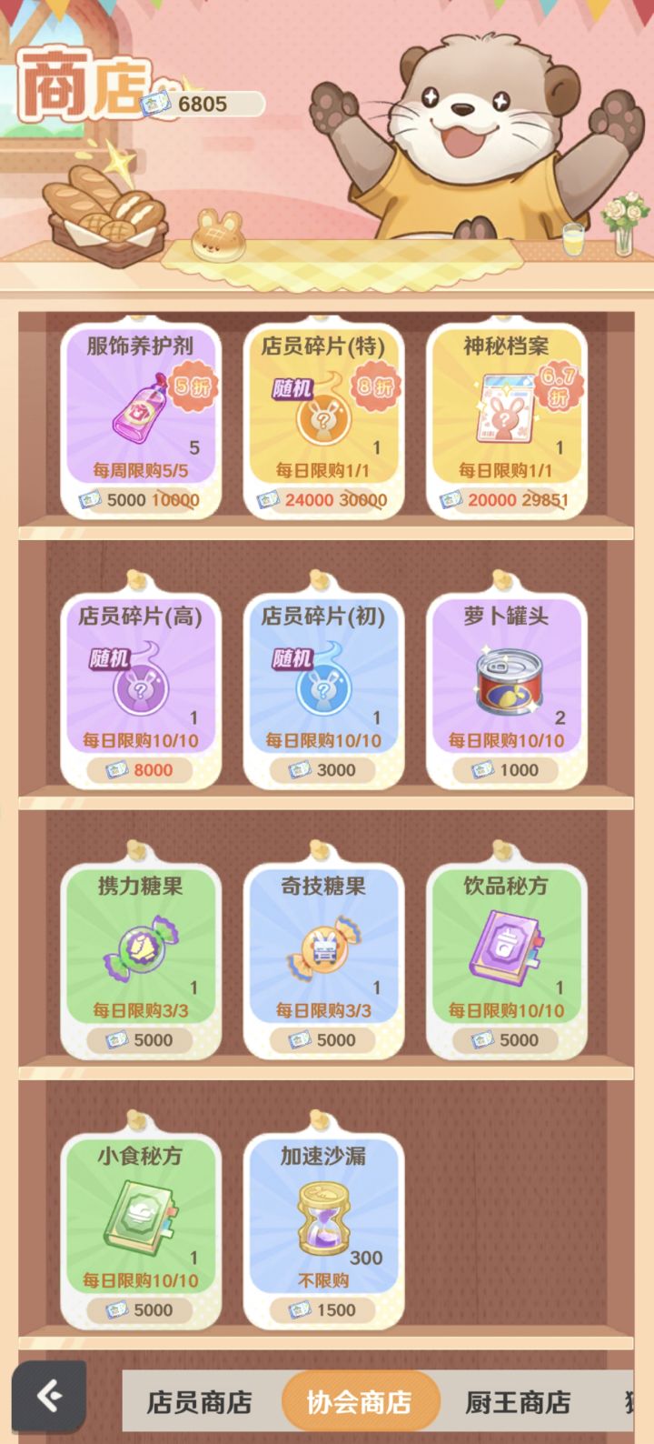 #解忧小食光攻略 1,店员攻略:前期有那个基础属性高上哪个,中期考虑主攻店员的特质类型,选定后优先抽取该特质店员。2,店员技能攻略:店员升星之后可进行升级技能,糖果缺少时,升级主攻特质店员的技能3,聚会攻略:日常聚会缺啥做啥,商务聚会糖果>书籍>锤子与瓶子4,协会任务:缺啥做啥,有招募金微时优先。5,沙盘美食仙人:前期优先书籍,等到50(或60)级时商务协会书籍奖励翻10倍时,优先选取密