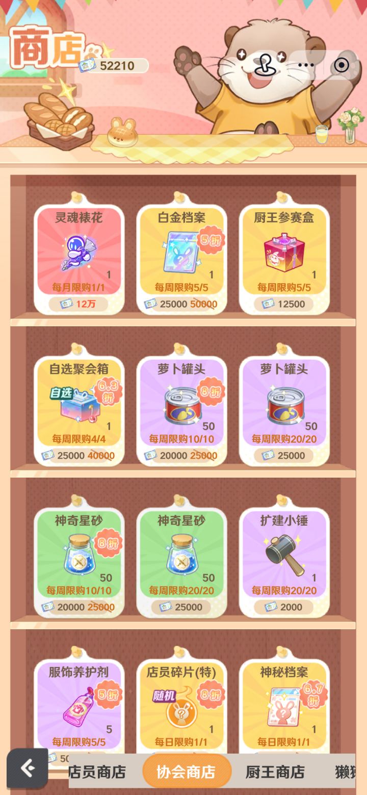 完成协会订单会给奖励,优先拿招募金辉,可以兑换碎片,给店员进行升星。活跃协会的碎片助力和建设助力也会多多,碎片助力能获得想要的碎片(每天一个), 建设助力能缩短设备升级时间,助力协会成员可以获得协会券,券可以攒着换红色厨具,提升厨艺值。 #解忧小食光攻略 #解忧小食光 UID:476#13613