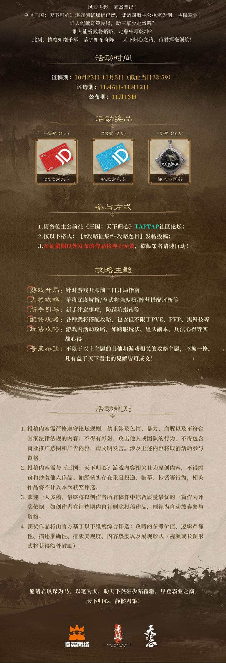 【获奖作品】一等奖100元京东卡:作者:三七二十一,攻略链接:https://www.taptap.cn/moment/731295883148136258https://www.taptap.cn/moment/731296122756138513https://www.taptap.cn/moment/732604119050620656https://www.taptap.cn/